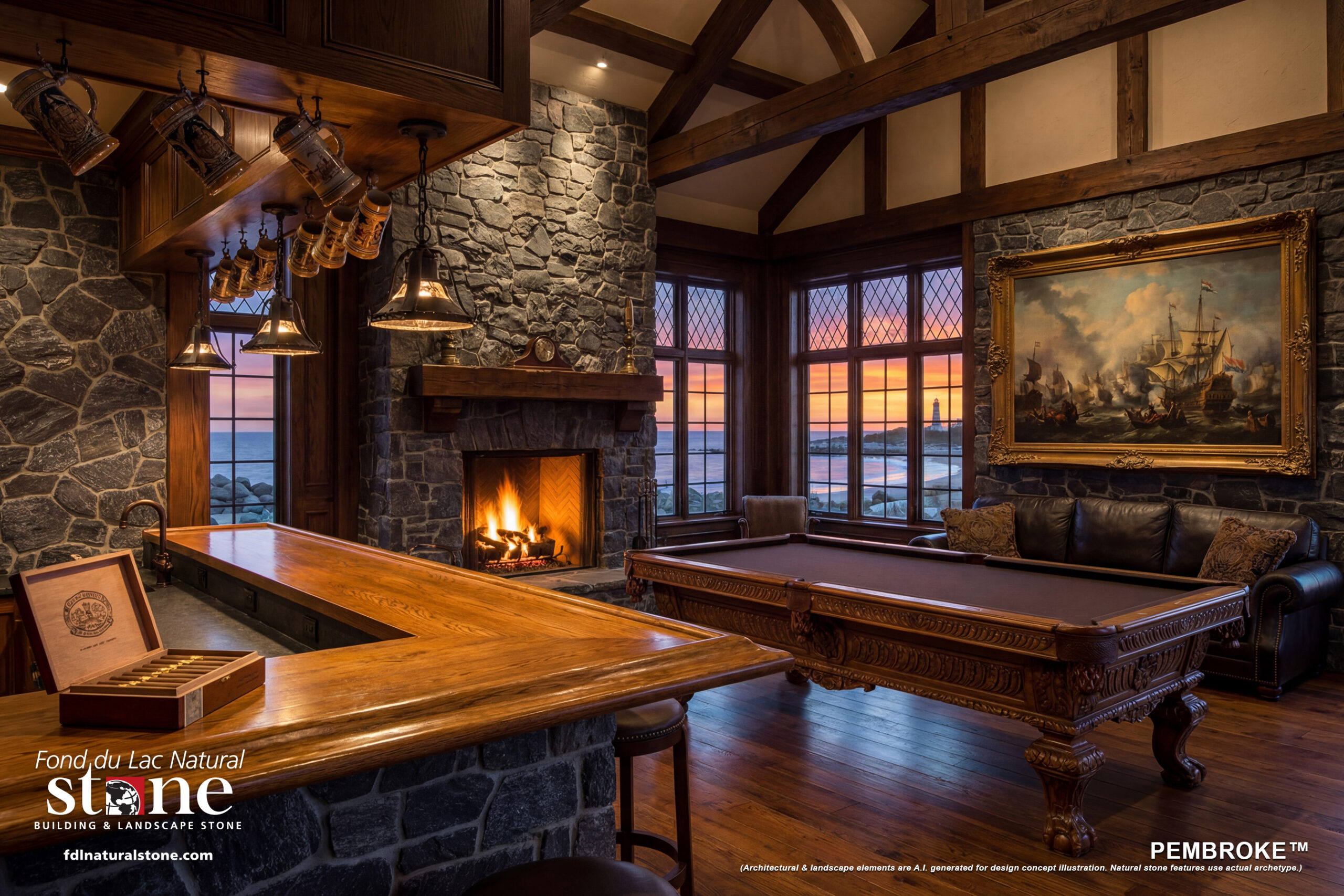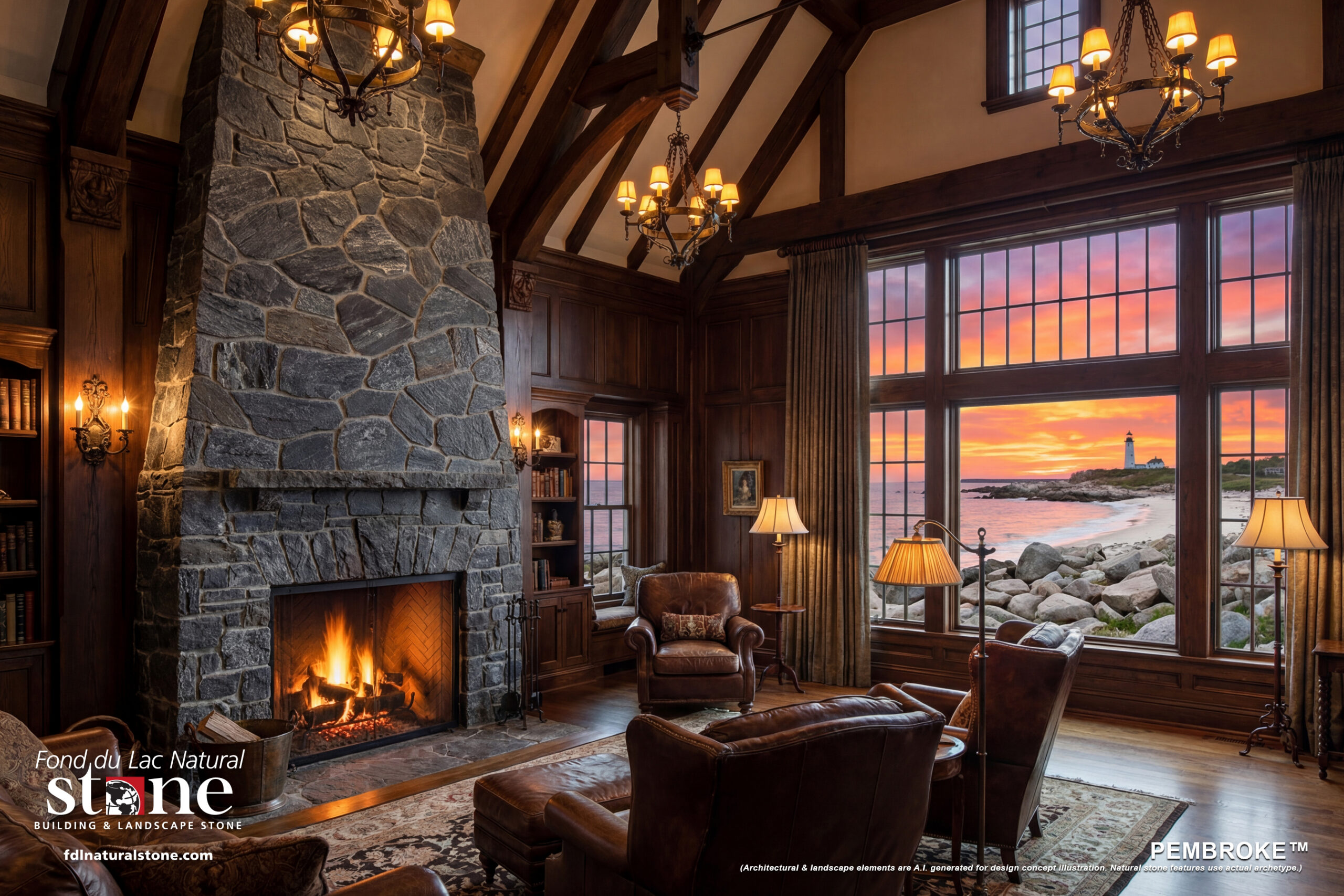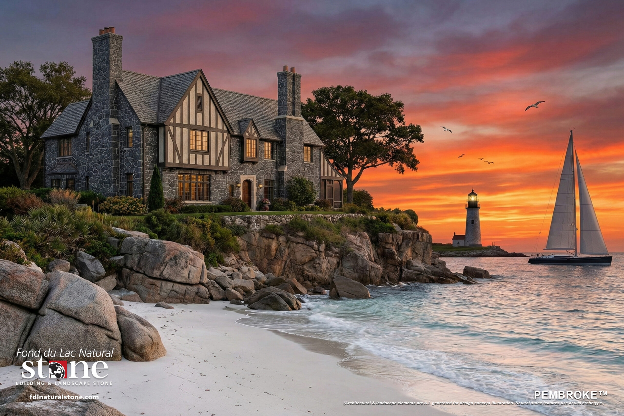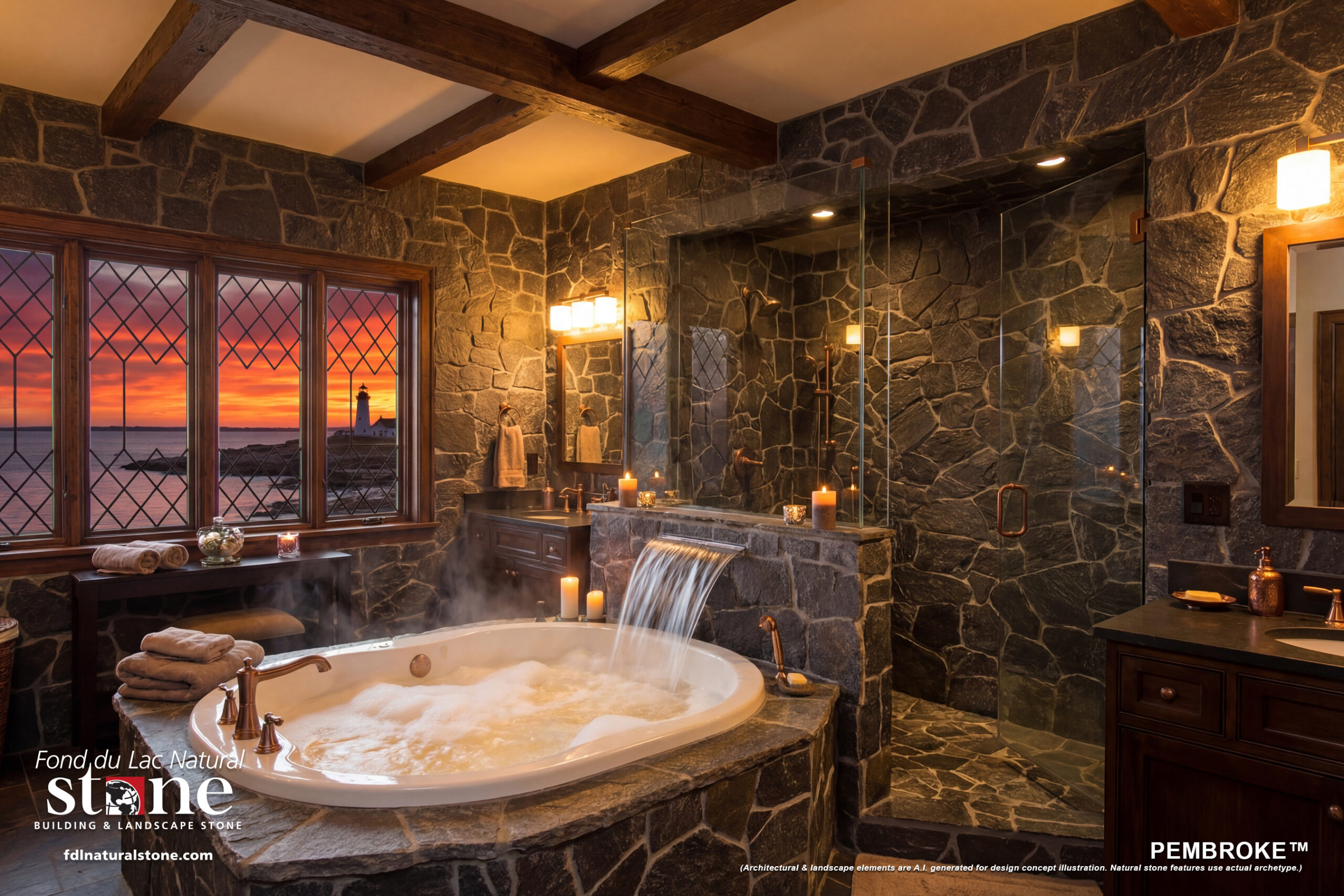 (For newer natural stone products that await installation photography, FDLNS can now provide photorealistic renderings of architectural & landscape elements. Natural stone features, however, use the actual archetype panel that was constructed for high-resolution thumbnail photography, showing accurate color & texture.)